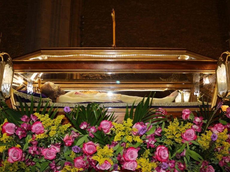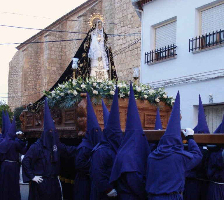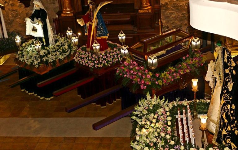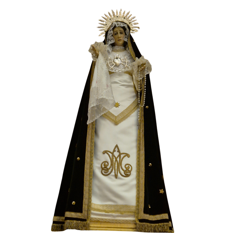 La procesión culmina en el templo. Allí, en un rito final de desgarradora cercanía, la Virgen Dolorosa es trasladada a los pies del Altar Mayor. Es el momento más íntimo, la oportunidad para que cada fiel se acerque a dar el pésame a la Madre y bese su manto.