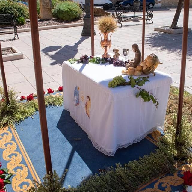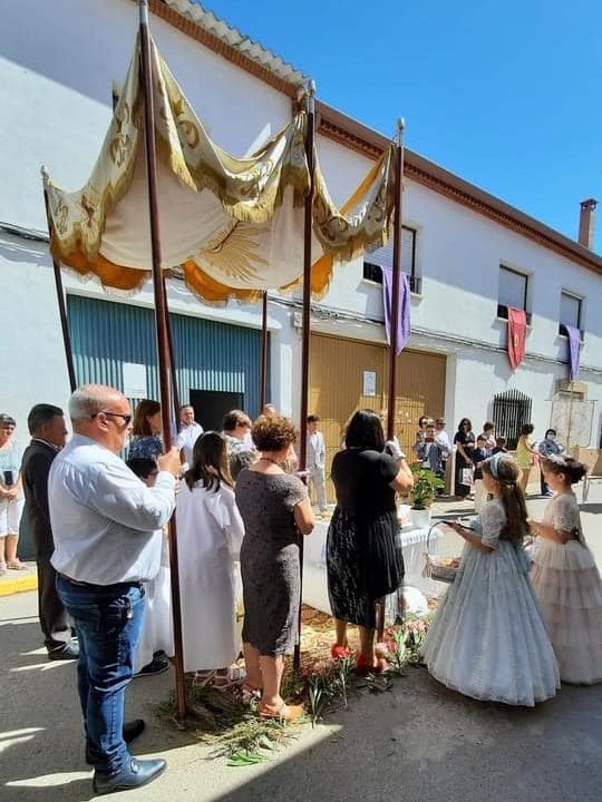 En la mañana del Corpus, el pueblo entero se une a la Cofradía, decorando las calles con pequeños altares de devoción y engalanando balcones. Al finalizar la Eucaristía, el sacerdote inicia la Procesión de Adoración con la Custodia.