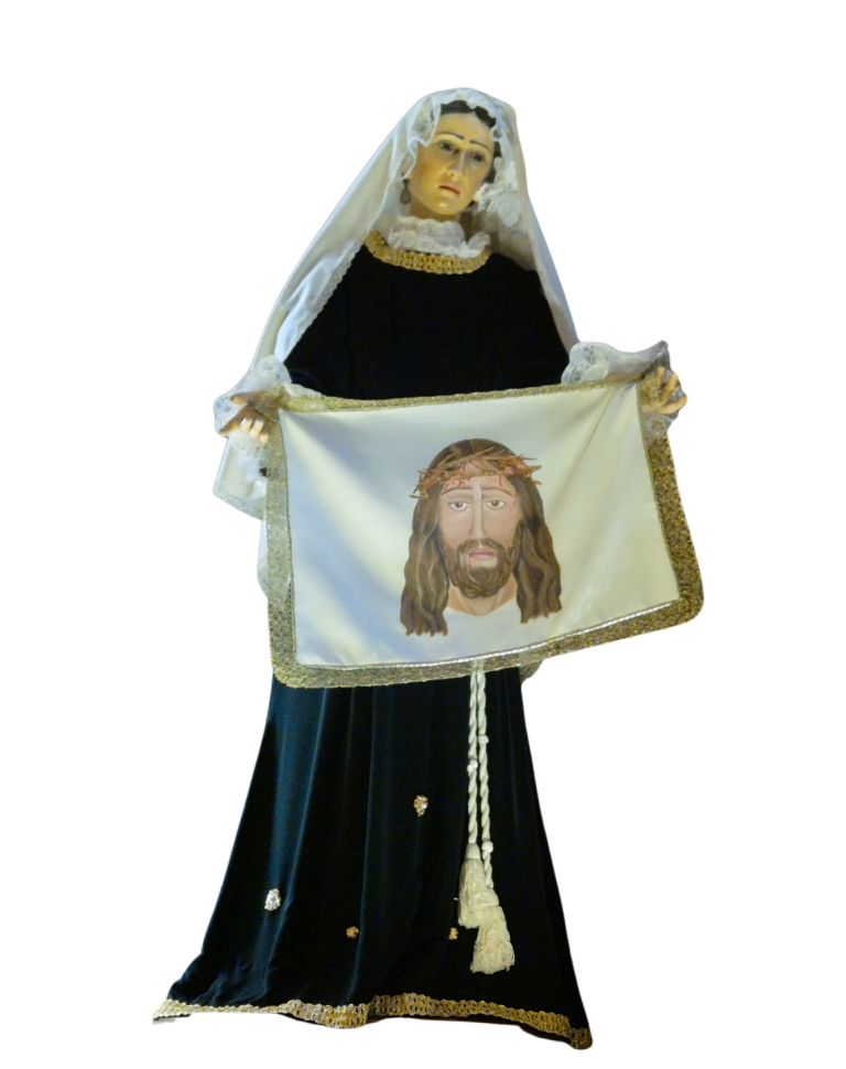 Esta imagen de la Verónica, encargada al escultor Paco Calero en 1981, es la segunda talla que posee la Cofradía sobre la santa. Existe otra más antigua, adquirida en 1954, de escayola, cuyo precio alcanzó las 2.571 pesetas.